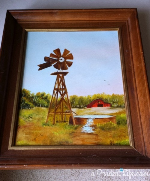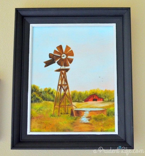 First up was a great quality wood frame holding one of my favorite paintings from Granny, my husband’s sweet grandma. I love Granny & have a thing for windmills, so I really wanted to feature this on my gallery wall. The frame just didn’t match the rest of the room.