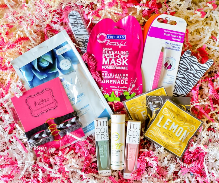 The last step was gathering some pampering goodies. To go with my “Beautiful Head to Toe” theme, I included some face masks & toenail polish.