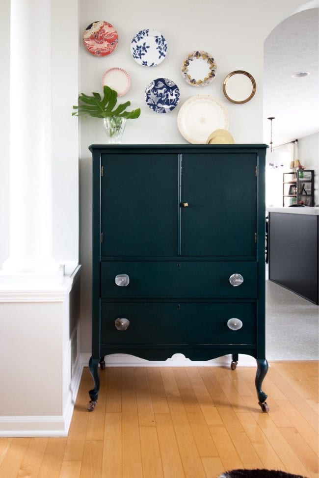 However, I also added in forest green through a painted hutch. That green is also in the inspiration fabric, so it all works together!