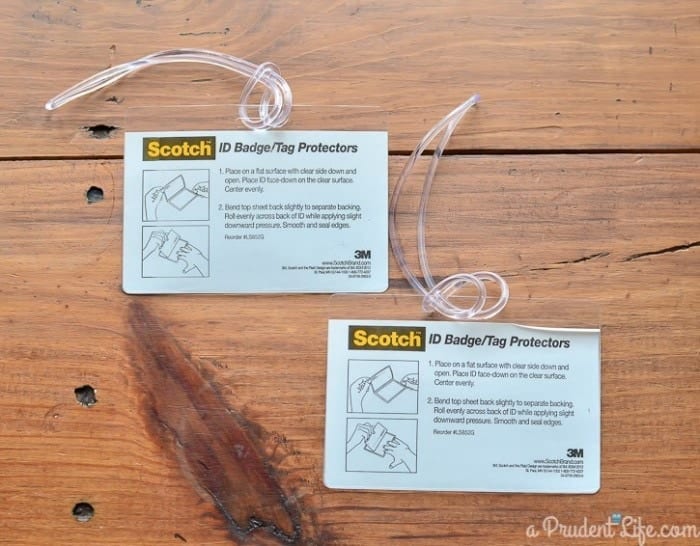 I started with Scotch ID Badges, which come with loops perfect for luggage. You can find them in office supply stores or on Amazon (affiliate link below). Amazon sells a 5 pack for $5, so these luggage tags would be really affordable gifts!