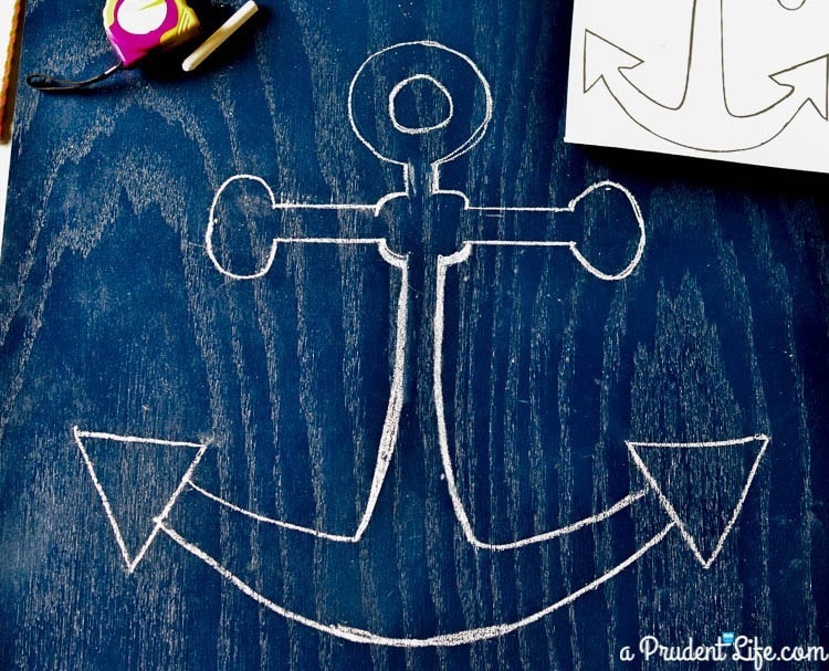 DIY Nautical Art SuppliesI found a small anchor image online to use as my guide, and printed it as large as my printer would allow. This is where I got really lucky. I realized that exactly doubling all the measurements on my guide anchor would be the perfect fit! Don’t try to be lucky like me. Figure out how big you want your finished product, then scale your guide appropriately.