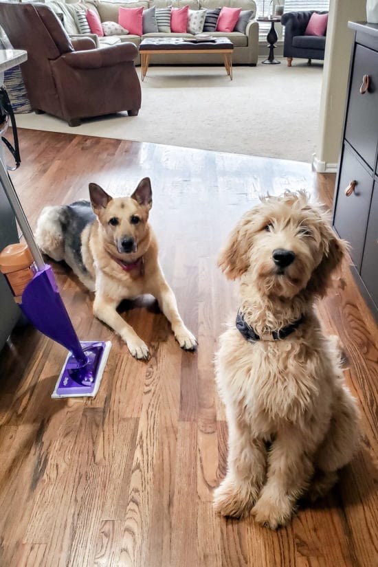 Although the cleaner dries quickly, I found out it’s best to put the dogs in the other room while I’m actively mopping to avoid clean paw prints. No matter how hard they are napping, in the short time the floor is drying, they wake up and run all over it.
