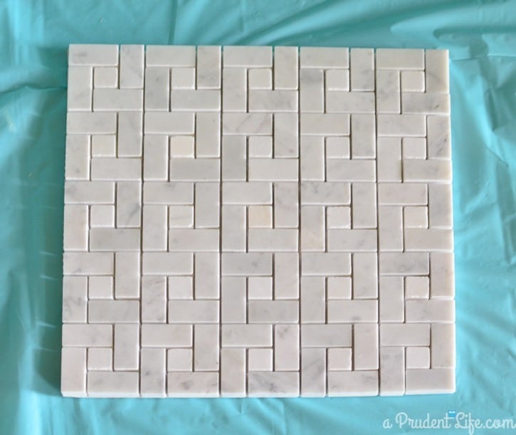 I toyed with the idea of using it as a back splash in our pantry, but it wasn’t quite right. Instead, I made a trivet! It was crazy easy. Mosaic style tiles have a webbed backing that can be cut with scissor or a utility knife. You will probably need to clean up the edges with a utility knife after you separate your trivet from the full piece of tile.