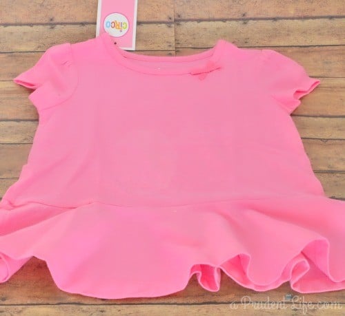 I started with this great pink ruffled top from Target. Love the little bow at the neckline!