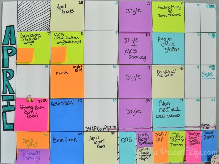 I can’t put into words how much this has helped me plan for the hectic couple months I have ahead of me. It also forced me to sit down and think through my goals for the blog. For example, doing at least two organizing and one room reveal post each month. The Post-it notes are awesome because they are mobile when you need to reschedule something.