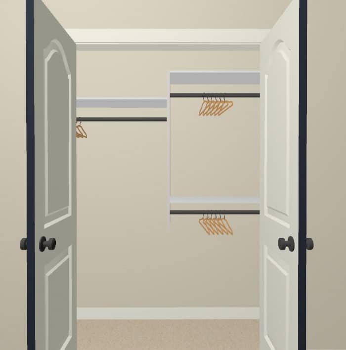To help with the space planning, I used software to mock up the closet. (I know people will ask, so here is the Amazon link to what I use. Be warned, it does have a big learning curve.)