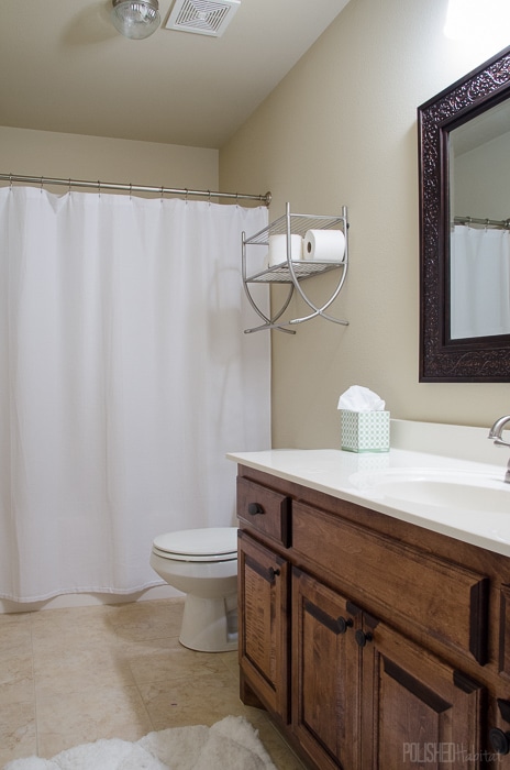 Budget Bathroom Refresh - This guest bathroom went from boring beige to organized modern industrial style in one weekend for under $300.