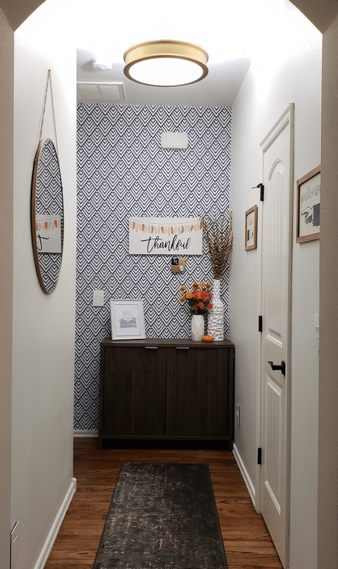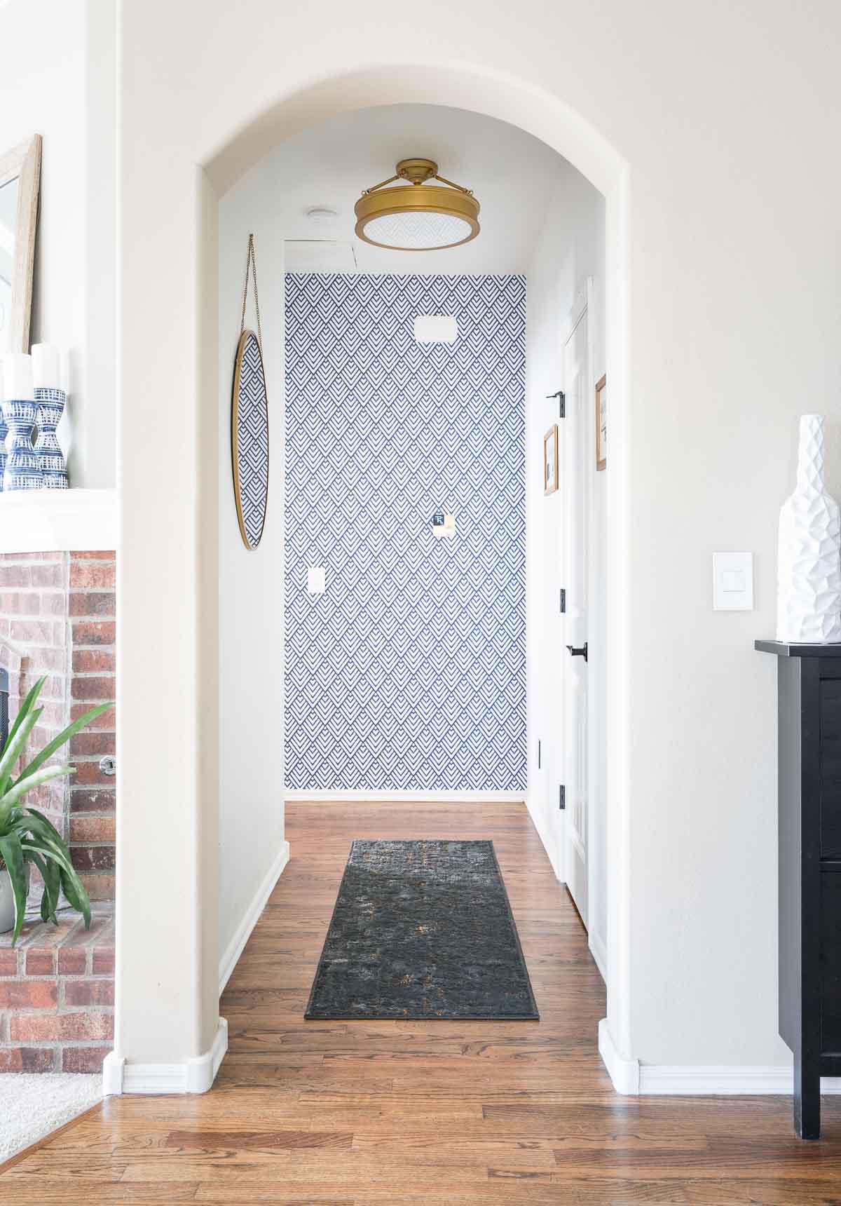 The tiniest space in our house is an entry from the garage that leads to the laundry room on one side and the main entry hall on the other. After some small changes, this little space became more functional and chic at the same time!