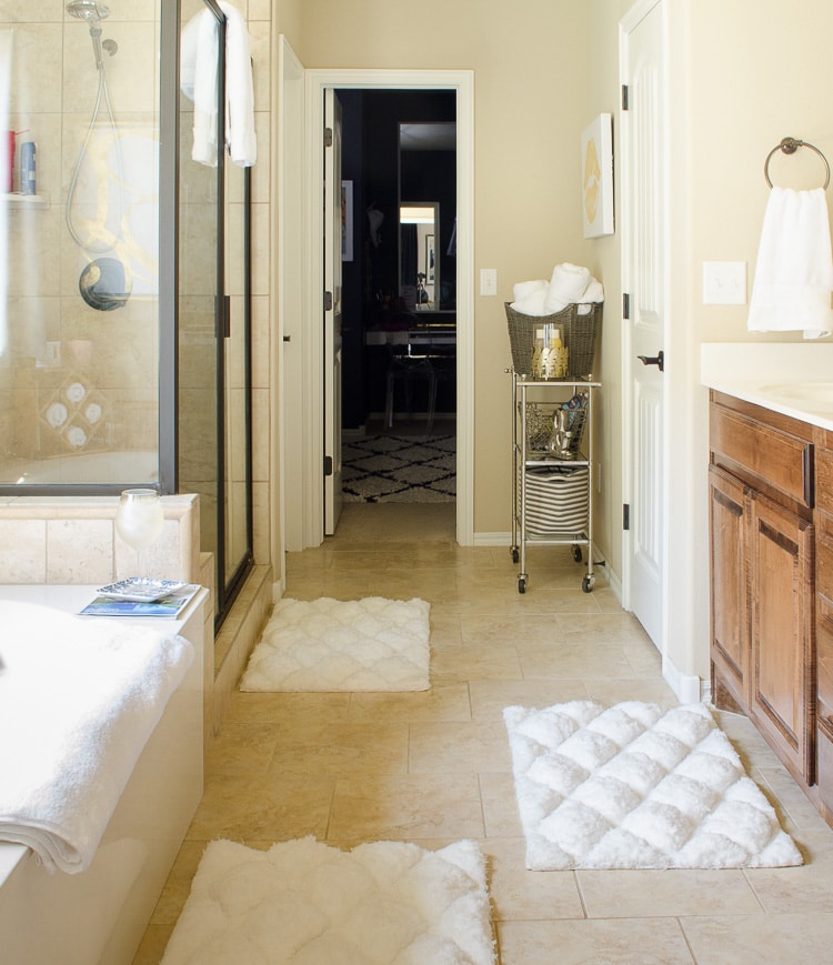 Glam Farmhouse Bathroom - Click to see the whole space and how is it organized.