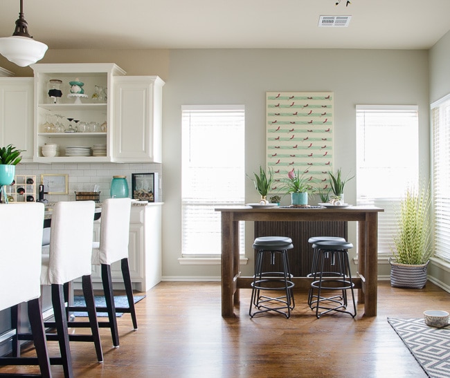 This room hasn’t received any love and it’s next on my list. We used our existing table from the old house. I’m planning on keeping Jackie, but everything else in this room will be updated as soon as my budget matches up with my plans. 🙂 UPDATE: We finished the dining room right before Christmas!