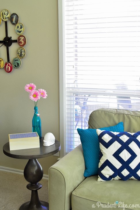 I’m sure you’ve noticed in all my nautical posts, but I’m trying to add pops of navy throughout the house. On one of my ribbon buying rampages at Hobby Lobby, I found an amazing navy and white roll and couldn’t wait to incorporate it somewhere in the living room.