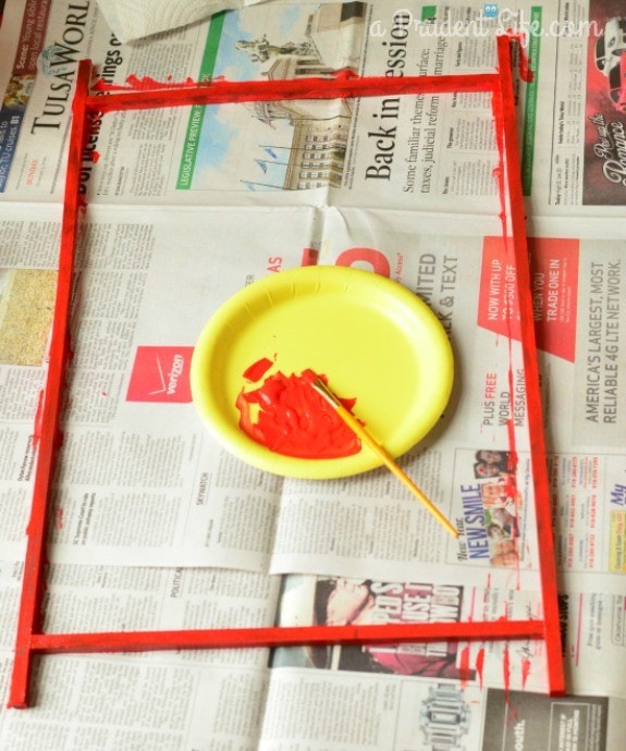 Assembling Frame For Valentine ChalkboardNext up, I painted the frame using Americana acrylic paint in Red Alert to add some Valentine red.