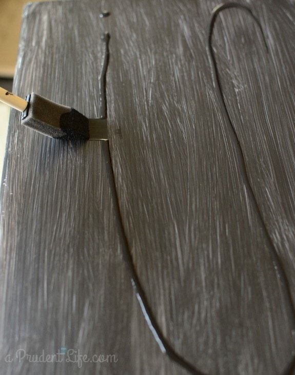 Applying the chalkboard paint was really easy. You apply two coats, one hour apart, in different directions. So, the first coat I painted up & down and the second coat side to side.